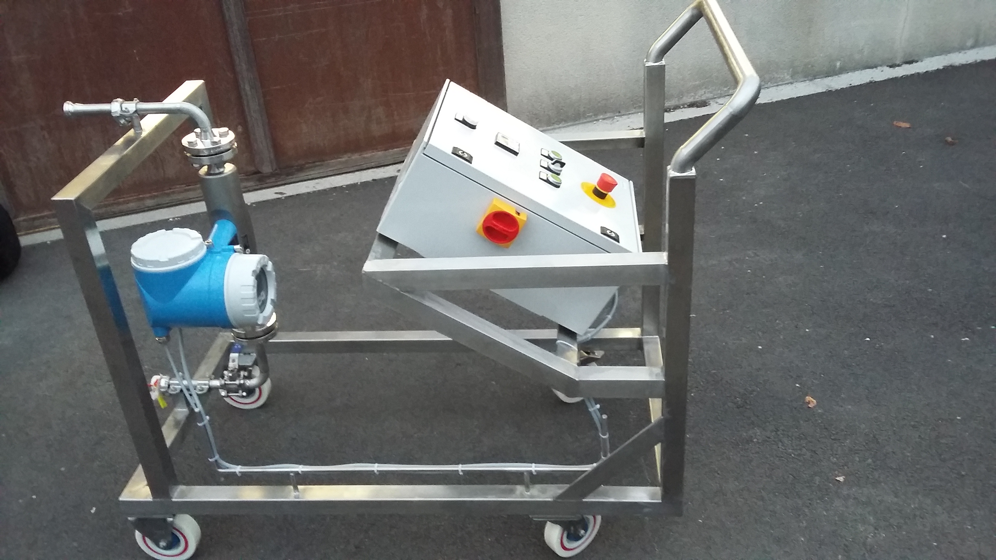 Réalisation de skid roulant ou sur pieds réglables pour des tests d’étalonnages ou pour du transfert de produits chimiques ou alimentaires. Retour à la galerie des réalisations